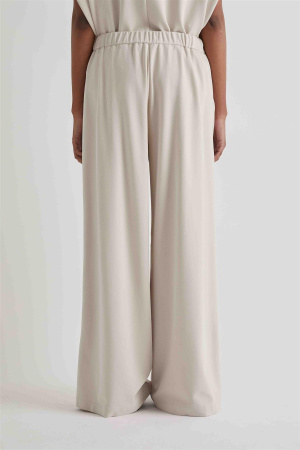 M6PAB2 fra Meimeij er en dresset bukse med vide bein. Buksen har strikk i livet og folder i front samt stikklommer i siden. Kommer i en nydelig lys beige farge. Passer godt sammen med M6PAB1 Blouse fra samme kolleksjon som kommer i samme materiale og farge.