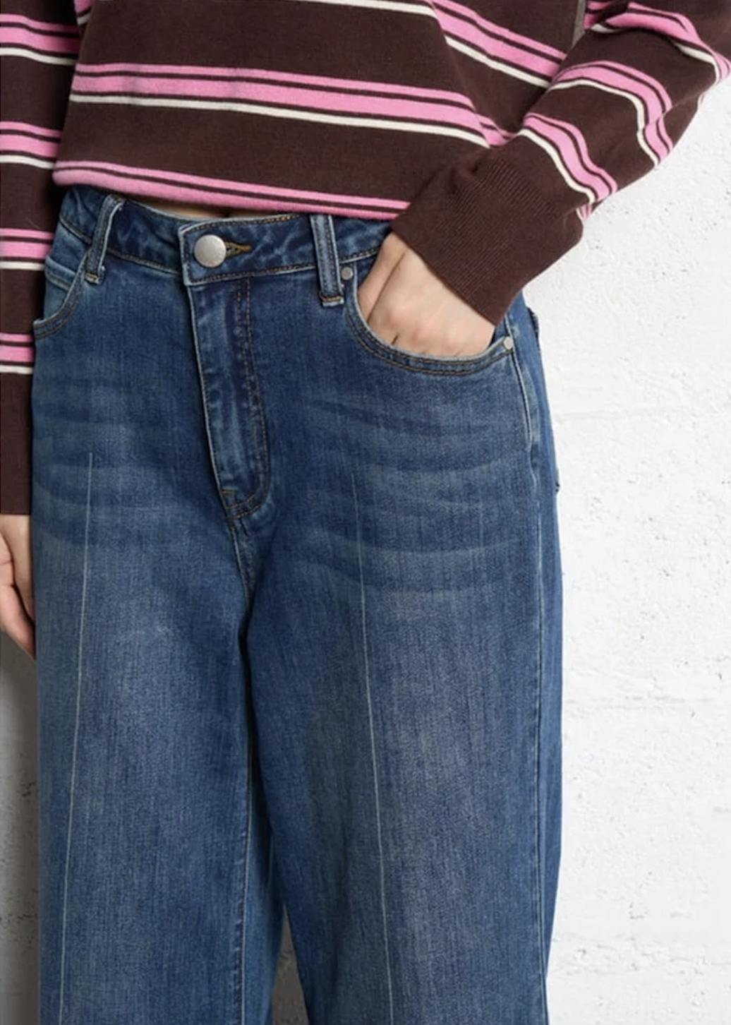 Jim er en bestselger fra Denim Studio. Jeansen er høy i midjen og har utsvingte bein med sleng. Lekre detaljer