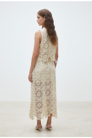 Sage Skirt fra RAVN RAVN er et vakkert maxiskjørt i blonder. Skjørtet har romatiske blondedetaljer med et kort heldekkende underskjørt.