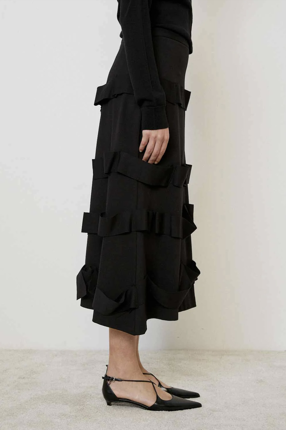 Maja Skirt er et strikket midiskjørt i supermyk merinoull. Den A-linjeformede fasongen faller vakkert takket være den strikkede kvaliteten, og