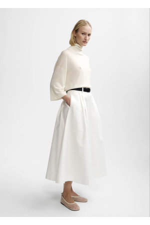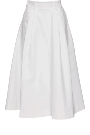 Anna Cotton Skirt. Anna Cotton Skirt fra AKS er et ankellangt volumiøst bomullskjørt vevd i en sprø og skulpturell kvalitet.