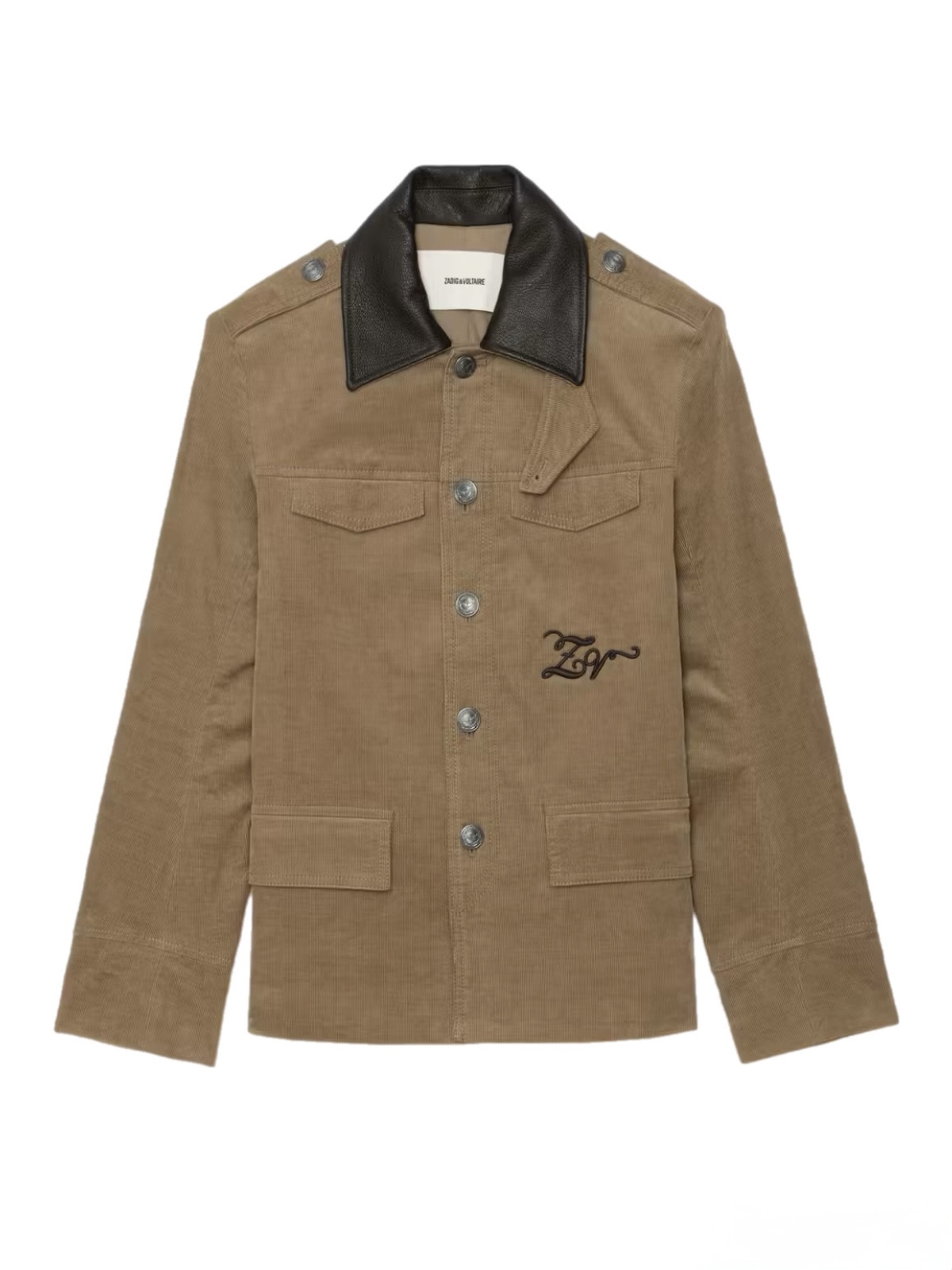 Veram Courdoury Jacket. Veram Courdoury Jacket fra Zadig & Voltaire er en militær inspirert jakke i kordfløyel. Jakken har fire lommer med klaff og krage i skinn. Avtakbar klaff i halsen. Lukkes med knapper. Jakken har en smal fasong, dersom du er mellom to størrelser anbefales det å gå opp en størrelse.