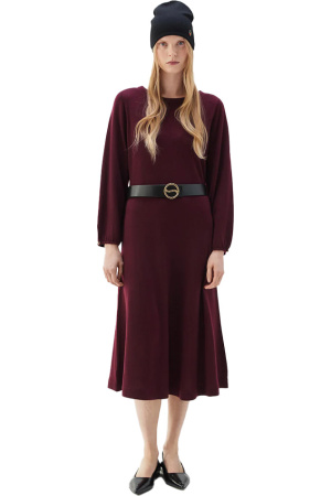 Eden Dress er en strikket midikjole med lange ermer, laget av myk merinoull. Denne komfortable og flatterende kjolen er designet