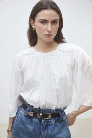 Laurynn Blouse fra Suncoo er en nydelig bluse i bomulls-voile. Mykt og lett materiale som føles svalt på huden. Blusen