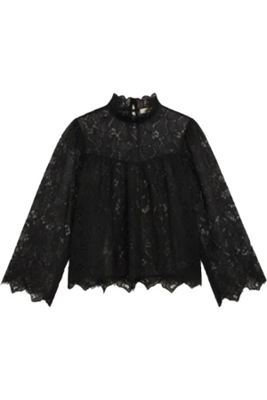 Lucia fra Suncoo er en romantisk blondebluse. Blusen er sydd i en delikat sort blonde med blomsterstruktur. Den har høy