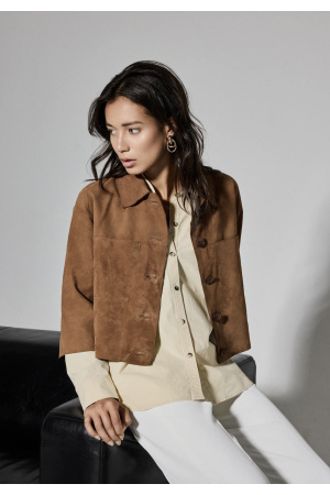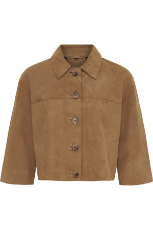 Cropped Suede Jacket fra Notyz er en kort skinnjakke i semsket skinn. Jakken har en kort rett passform med 3/4