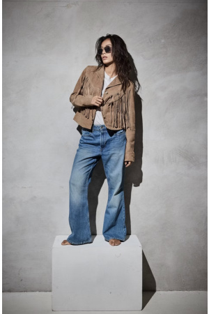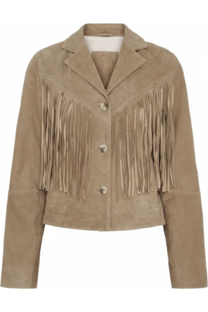 Blazer with Fringe fra Notys er en semsket skinnjakke med frynser. Jakken har en kort, smal passform med krage og