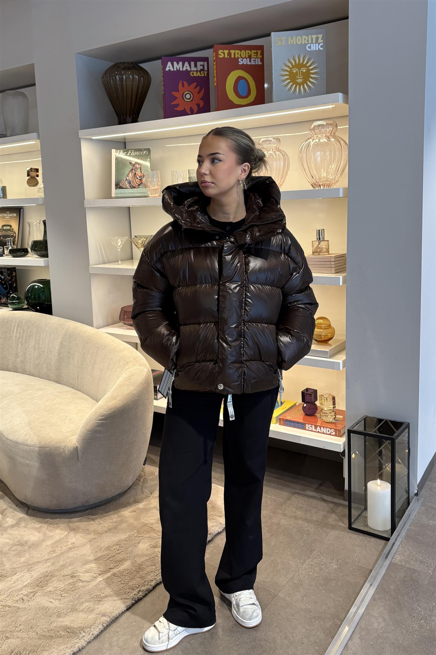 Debbie fra C.A.Y.A er en kort og oversized dunjakke. Jakken har en stor avtakbar hette og kule detaljer som splitt