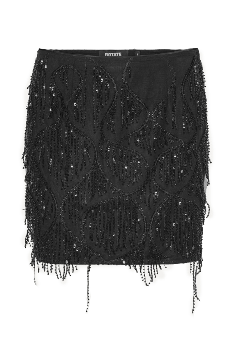 Flower Mesh Pencil Skirt fra Rotate er et figursydd midiskjørt i stretchy mesh med florale applikasjoner i fløyel, som gir
