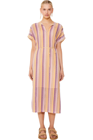 Maxikjole fra Dea Kudibal. Denne kjolen har volumiøse ermer og et utsvingt, lagdelt skjørt. Kan strammes i livet ned et