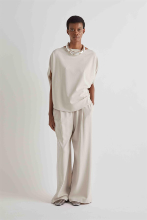 M6PAB2 fra Meimeij er en dresset bukse med vide bein. Buksen har strikk i livet og folder i front samt