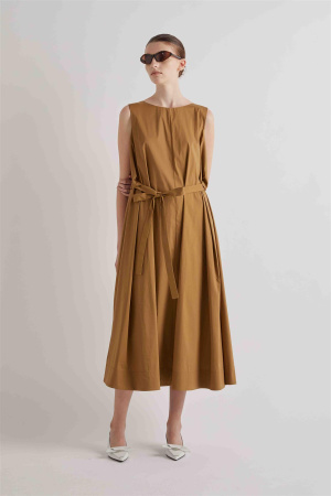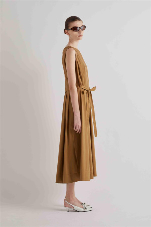 M6PB01 Dress fra Meimeij er en klassisk kjole med rund hals og foldedetaljer. Kjolen har en a-fasong hvor midjen blir