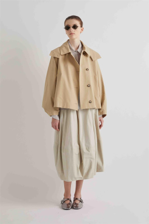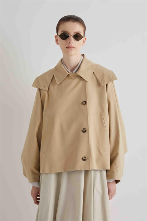 M6PN01 Jacket fra Meimeij er en kort trenchcoat inspirert jakke. Jakken har en oversized moderne passform med vide ermer. Hetten