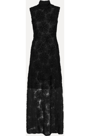 Flower Mesh Pencil Skirt fra Rotate er et figursydd midiskjørt i stretchy mesh med florale applikasjoner i fløyel, som gir