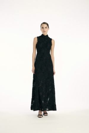 Silk Velvet LS Mini Dress fra Rotate er en elegant minikjole i myk fløyel med lange ermer og høy hals.