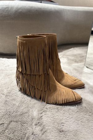 Bukse fra Meimeij med vide lett utsvingte bein. Dekorativ fald nederst på beina. Stretchy stoff med strikk i midjen. Buksen