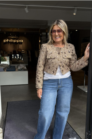 Daisy fra Suncoo er den perfekte tweedjakken denne sesongen. Jakken har et rutete mønster frynsede detaljer. Daisy har en rett