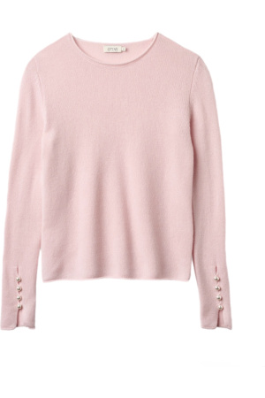 Abbelone fra O’Tay. Nydelig genser i 100% kasjmir. Genseren har rund hals og ermene er dekorert med fire perleknapper. En